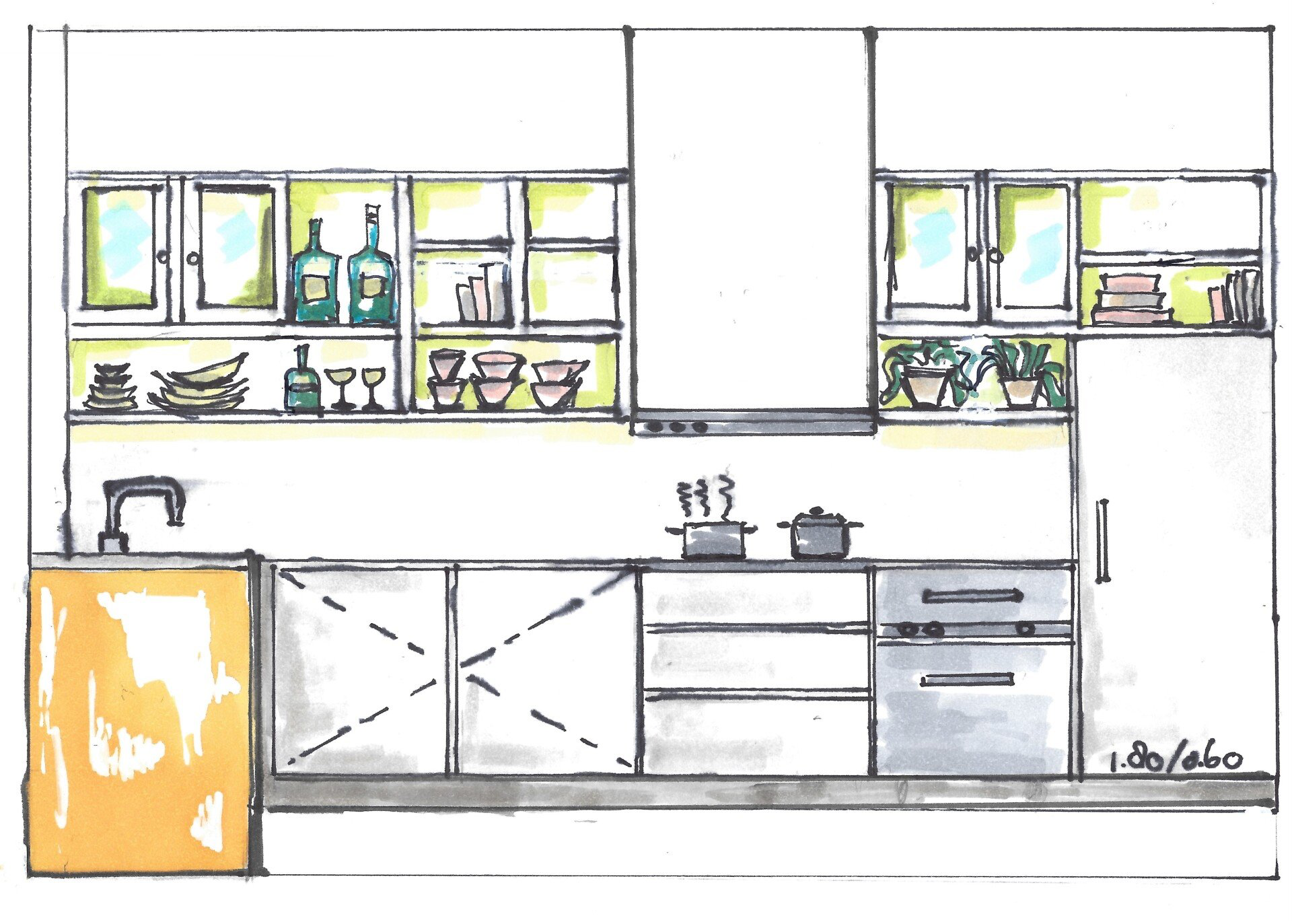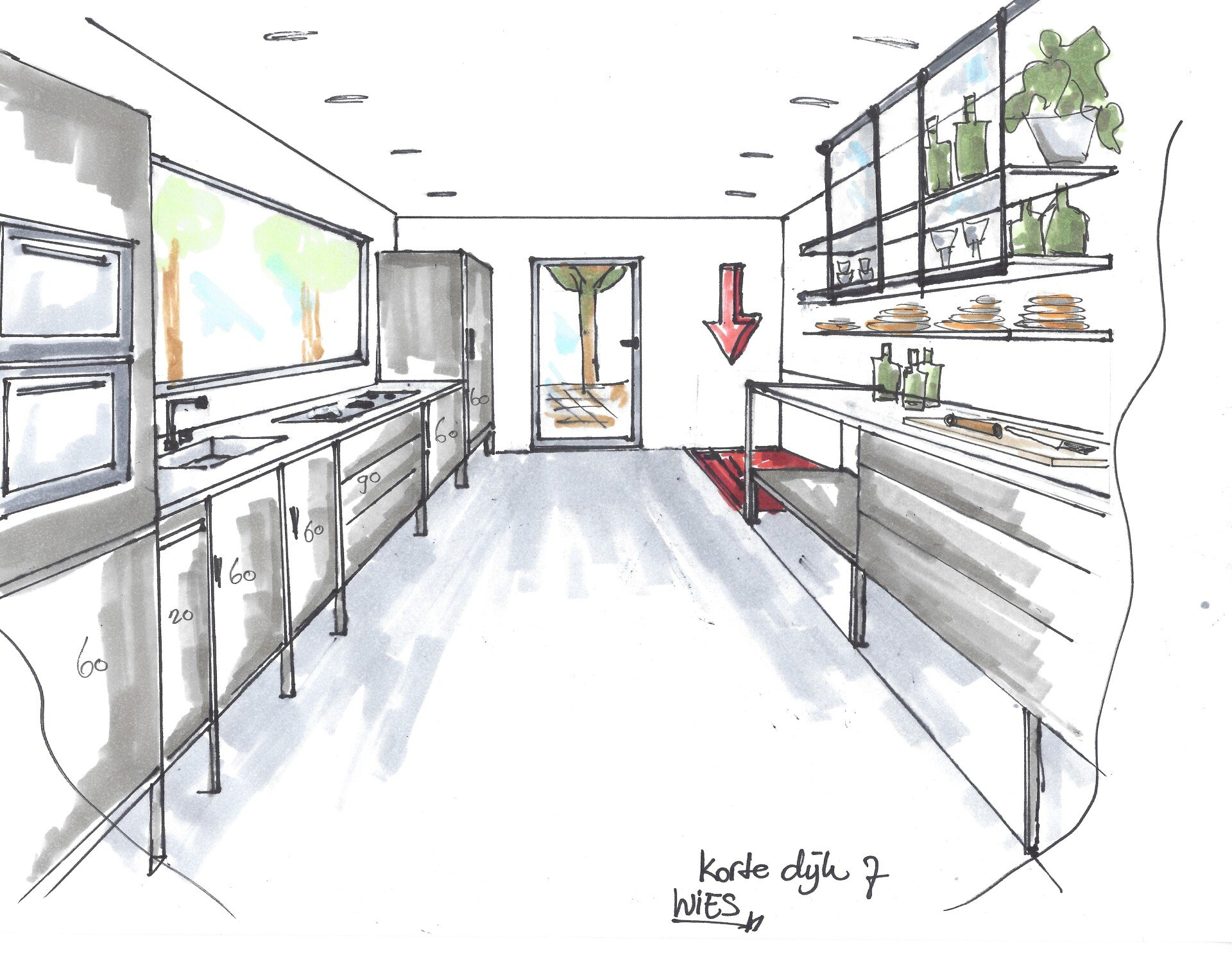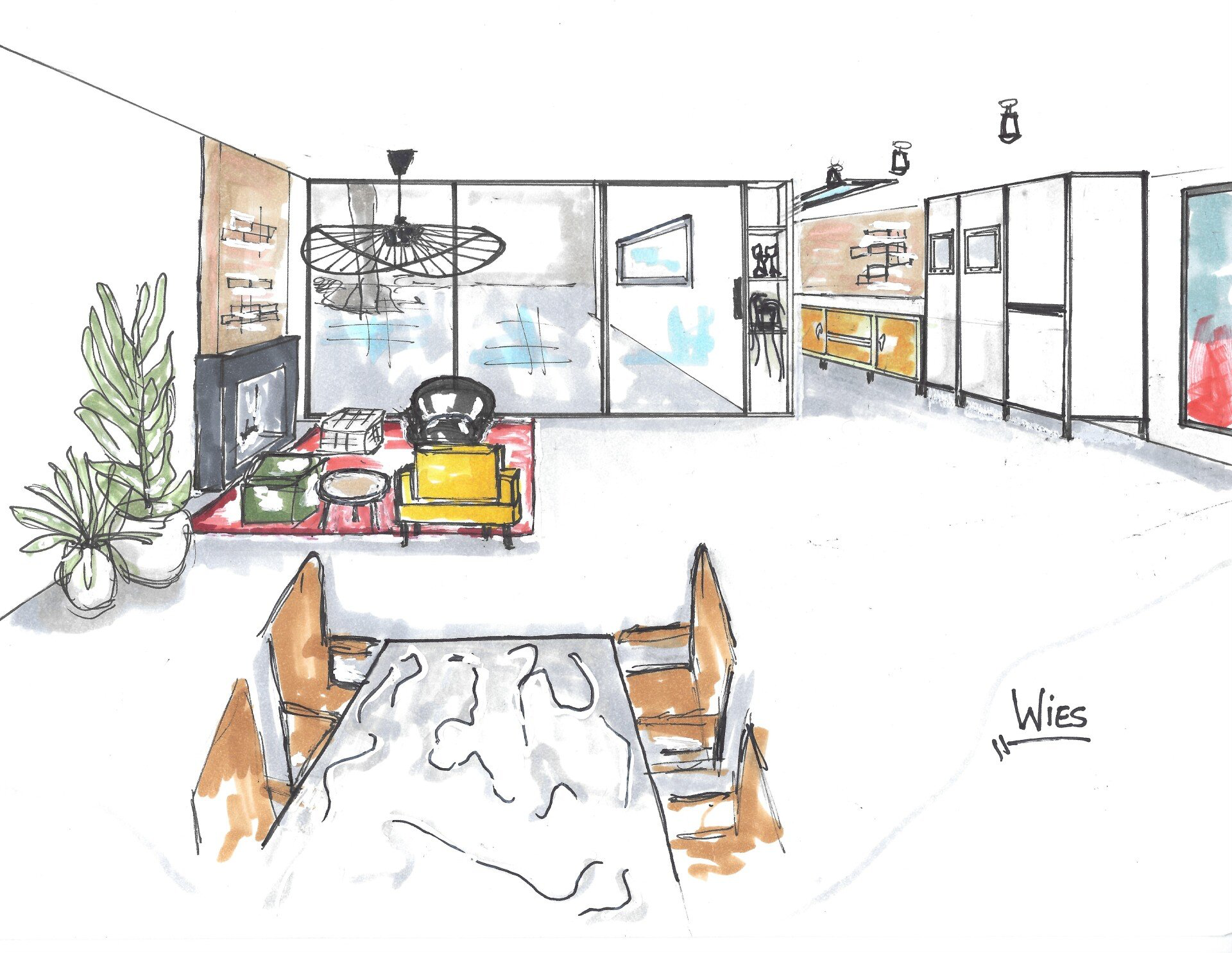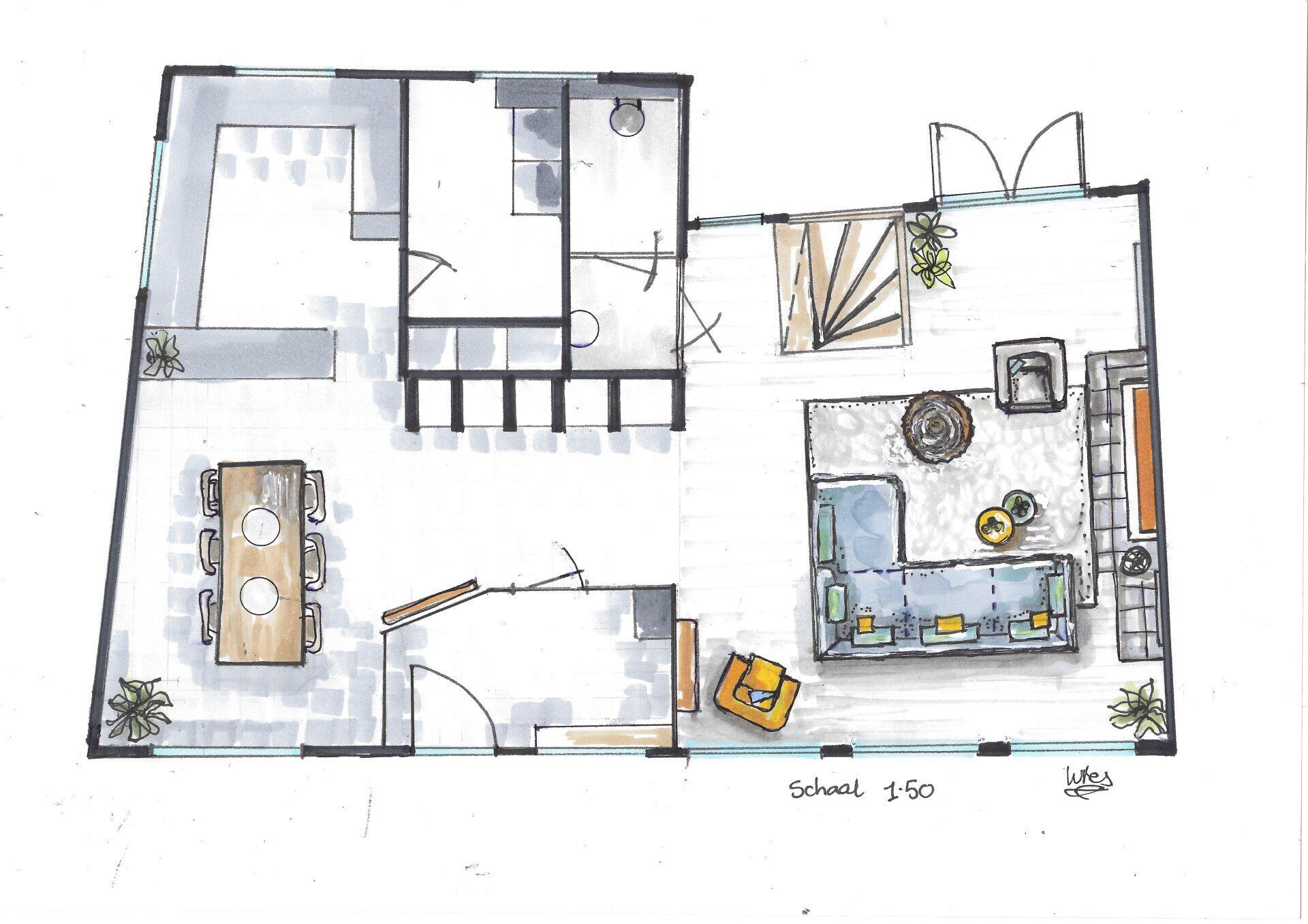 Hier vind je tekeningen en foto's van projecten die ik heb gerealiseerd. Ik begin vrijwel direct met schetsen, zo blijft de ruimte goed in mijn geheugen gegrift en vergeet ik geen enkel hoekje.